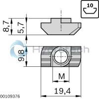 T-nut 10 mm slot steel; galvanized M6